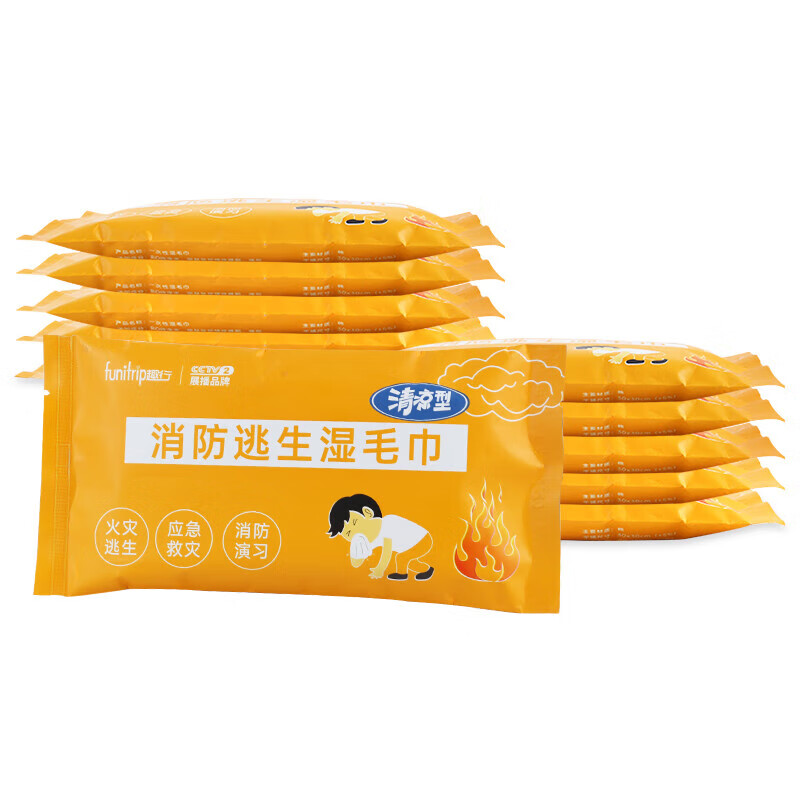 趣行消防湿毛巾 消防演习一次性湿巾家庭火灾应急逃生防烟湿巾100条 消防湿毛巾*100 白色