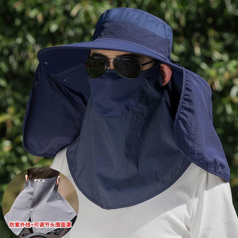 防晒帽男士遮阳帽大檐遮脸 藏青+面罩