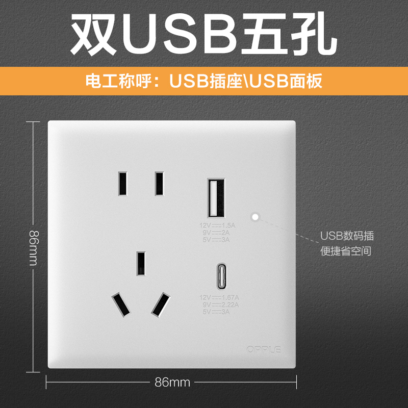 欧普W18白色 白色系列 USB快充五孔