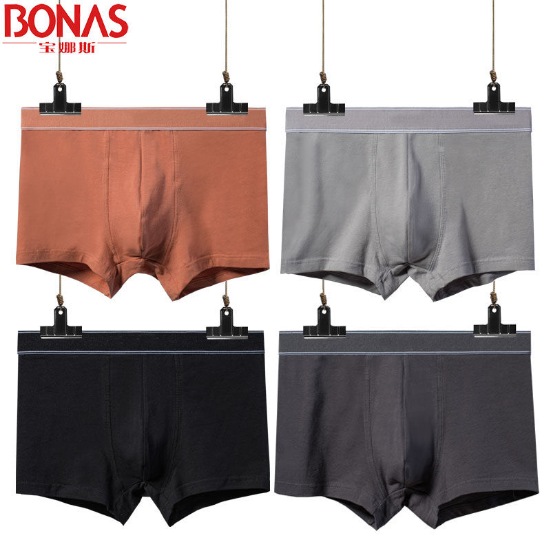 男士内裤棉内裤男士平角裤衩舒适纯色男内裤男四角短裤头 XL(105-125斤) NS055-F(4条)