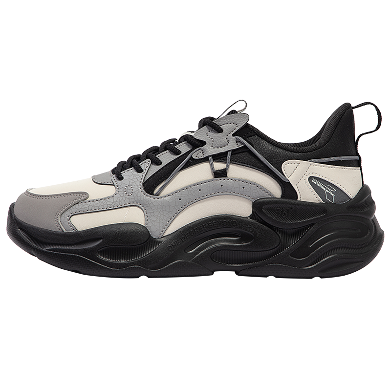 澎湃丨361°男鞋运动鞋新款革面休闲鞋男士软底复古老爹鞋子 燕麦奶/曜石黑 40码