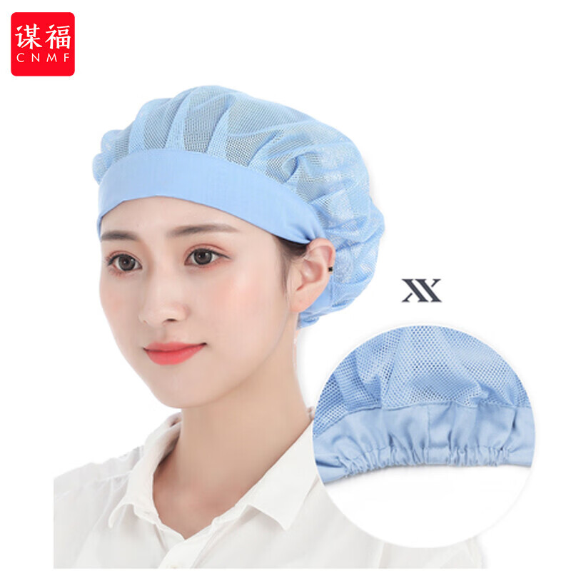 谋福 工作帽 防尘透气无尘帽子 淡蓝色宽边网帽(5个)