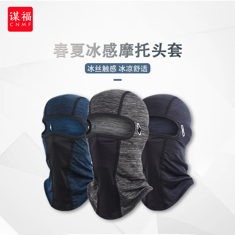 谋福 头套 夏季长款防晒遮阳反光骑行头套 护脸透气面罩(湖蓝 )
