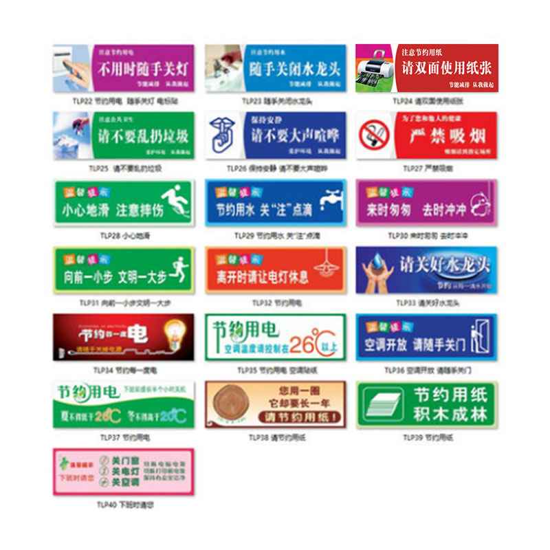 自营 丛林狐 节约用电节能节电标语不用时随手关灯标识牌/贴TLP PVC 10*30cm TLP23 随手关闭水龙头