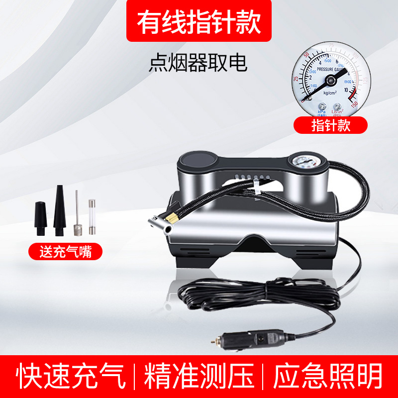 车载充气泵打气泵汽车用打气筒便携式高压12v电动冲气气压应急 80缸有线点烟器取电【机械表】快速补气★照明★测压★送充气嘴