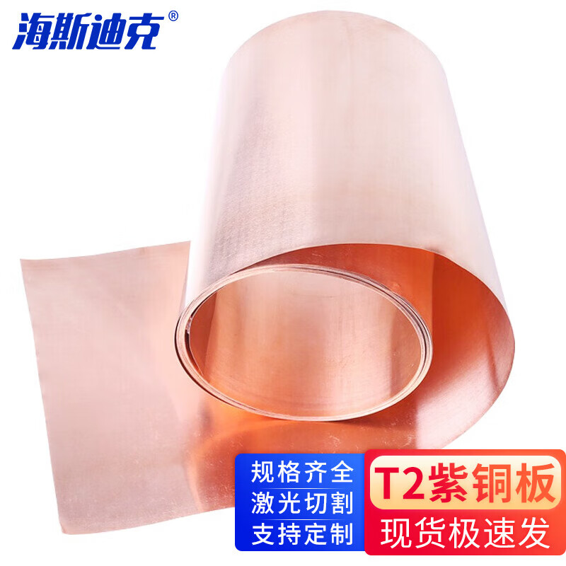 海斯迪克 紫铜片铜皮铜箔紫铜带 T2紫铜板 0.05mm*200mm*1米