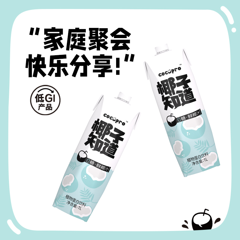 椰子知道0糖鲜椰汁1L*6 植物蛋白饮料家庭聚餐酒席