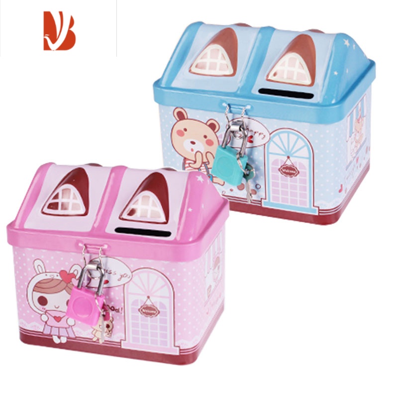 三维工匠密码锁儿童存钱罐防摔卡通抖音创意储蓄罐生日储钱罐男孩女孩网红 S23小房子【蓝色+粉色】一对32XEU4