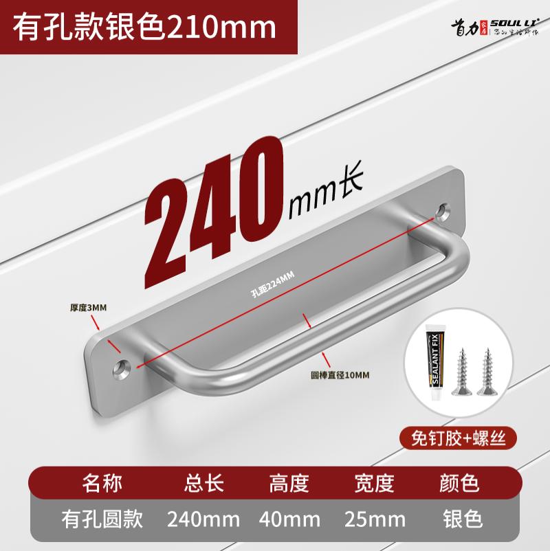 门窗拉手把手窗户木门阳台推拉门手柄玻璃门柜移门明装手把免打孔- - 【有孔加厚】长240mm- - 银色