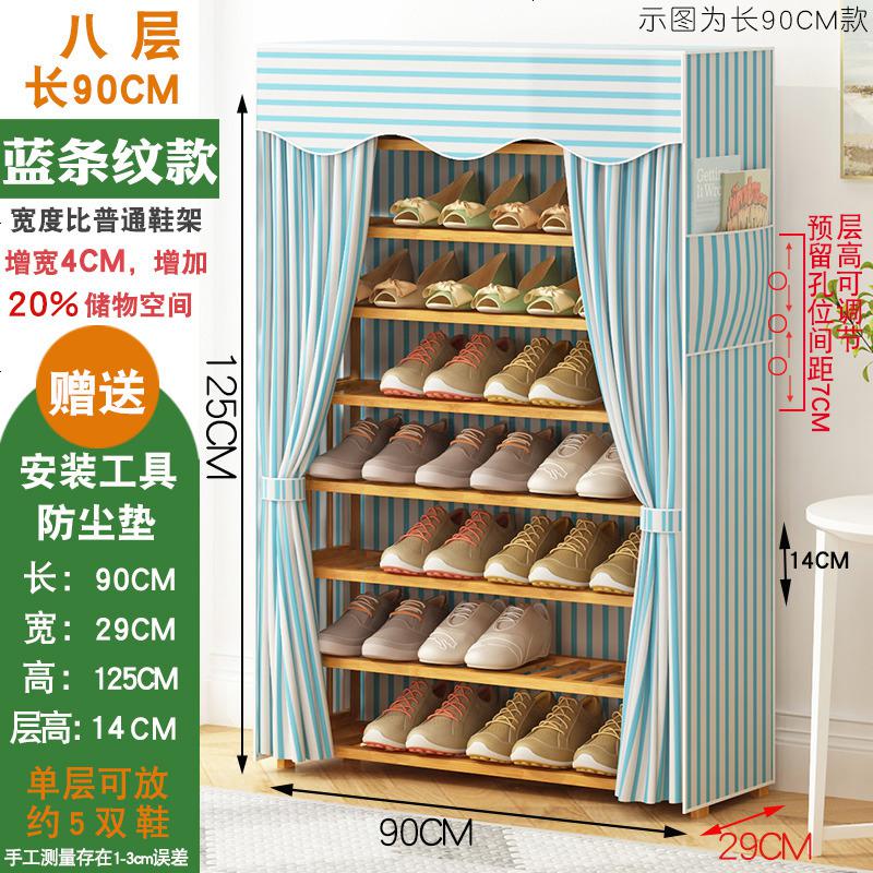亮晶晶鞋架子简易多层宿舍收纳防尘鞋柜家用经济型省空间置物架实木_785 8层长90CM【经典蓝条纹】