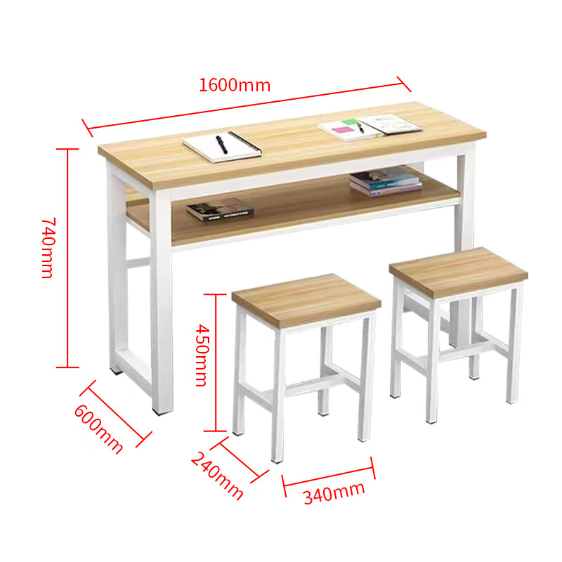 誉卓远长条桌培训桌学习桌椅学校培训班写字课桌椅 双人含椅160*60cm 米色