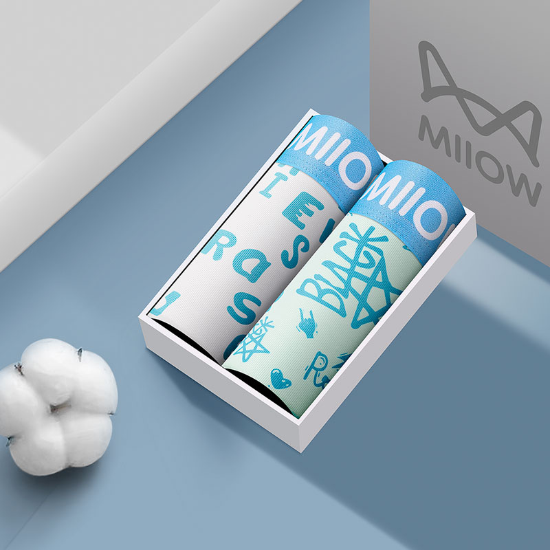 猫人男士内裤纯棉抗菌2025新款四角短裤透气男生平角裤头春季 3XL (2条装)浅绿印花、白色印花