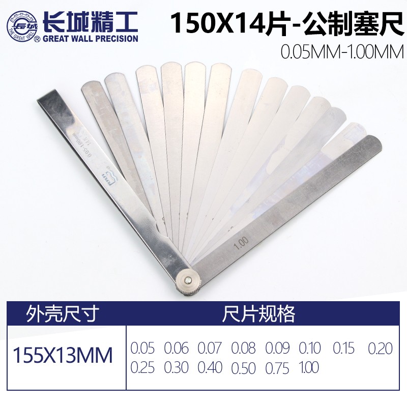 长城精工塞尺筛尺不锈钢高精度14片0.05-1.0mm间隙尺塞片150mm 428010*10