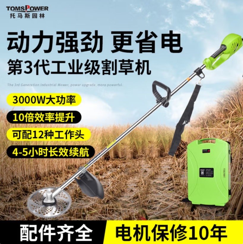 TOMSPOWER 割草机 充电式大功率锂电动除草割灌机 【割草套餐】48V12A(4-5h)