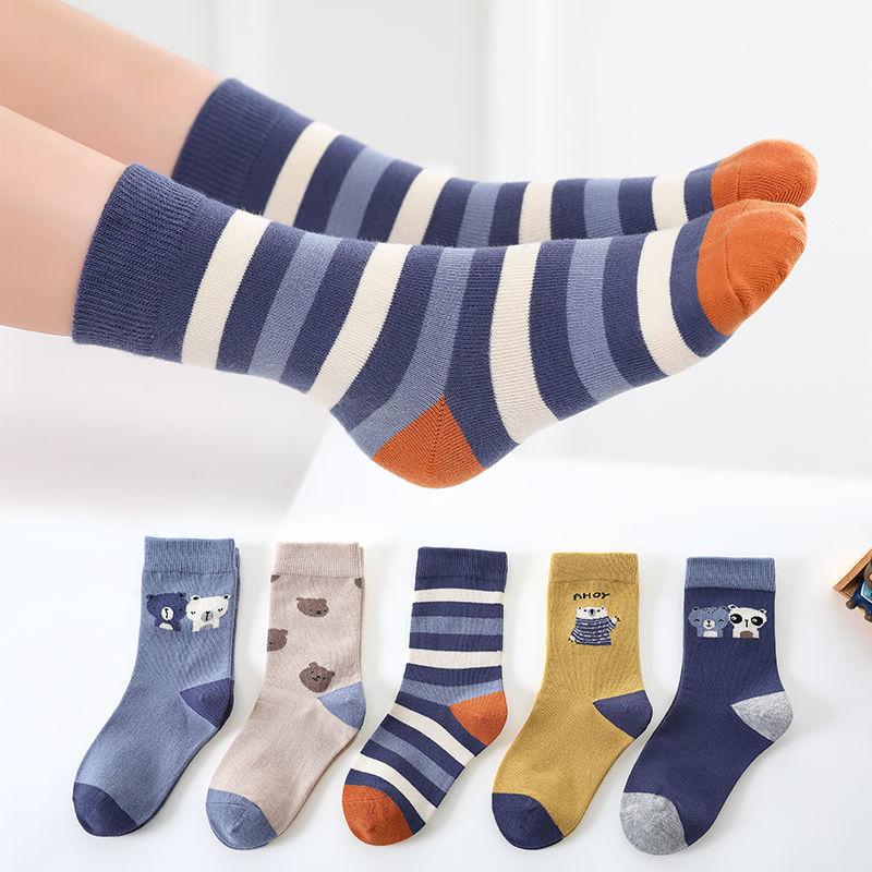 儿童袜子秋冬中筒袜耐脏吸汗保暖棉男童小孩中大童春秋棉袜_883 中大童成人适合鞋码39-42码 小熊乐园5双