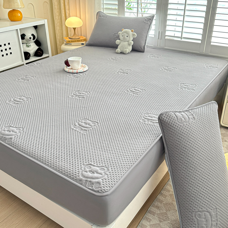 自营 A类原棉防水床笠加厚夹棉床罩隔尿全包围床垫防尘罩保护套 48x74cm枕套一对 爱豆熊—深灰-【A类母婴级】MT