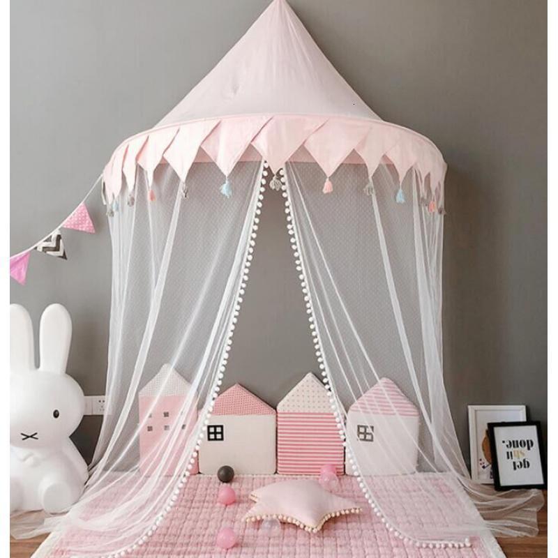 少女心床幔读书角帐篷小公主室内儿童游戏屋床篷玩具房装饰_1_744 其它 粉色流苏三角网纱(大号1.5)