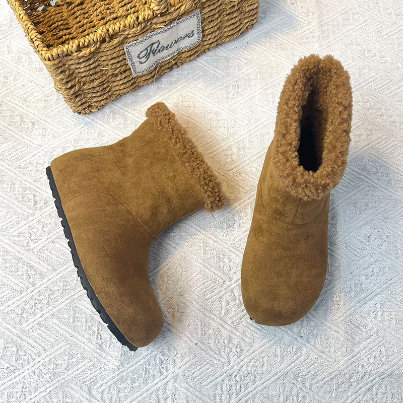 内增高3.5cm加绒保暖雪地靴女冬季新款平底短靴复古百搭棉鞋 驼色 36