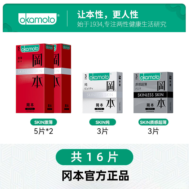 冈本SKIN便携官方旗舰店001避孕套超薄男女性专情趣用品003安全套 16片装