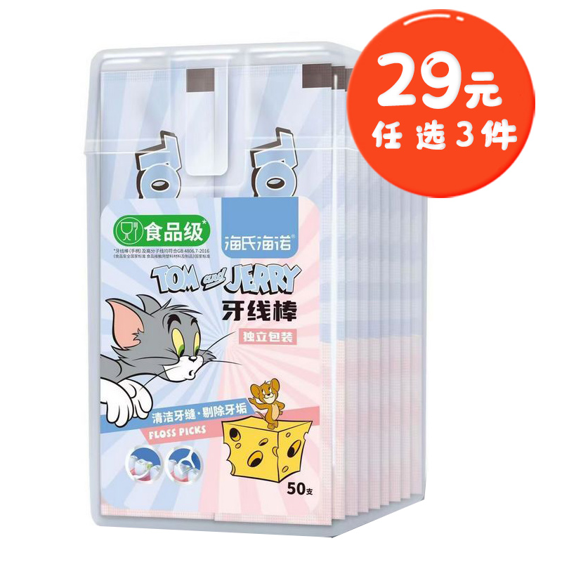 海氏海诺 50支独立装牙线棒口腔牙齿清洁超细滑弓形剔牙牙签齿缝护理牙线棒