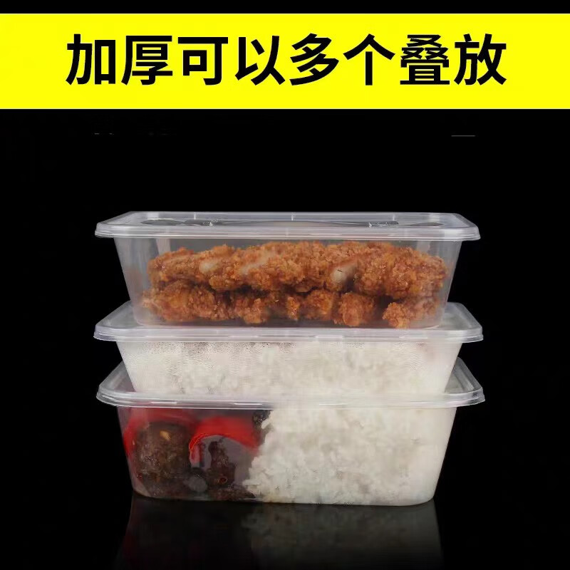 中锐智采 钦呈饭盒一次性打包盒方形外卖餐盒食品级便当盒加厚快餐盒带盖商用 1000ml方形透明餐盒-50套
