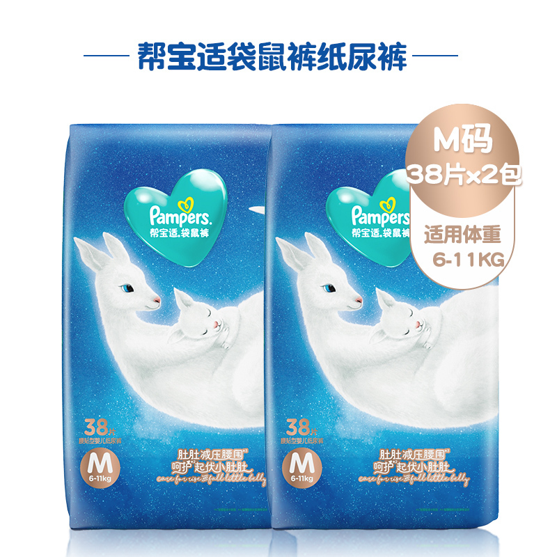 帮宝适一级帮袋鼠裤新生婴儿纸尿裤M38片宝宝柔软超薄尿不湿非拉拉裤 M码/38片*2包【6-11kg宝宝适用】