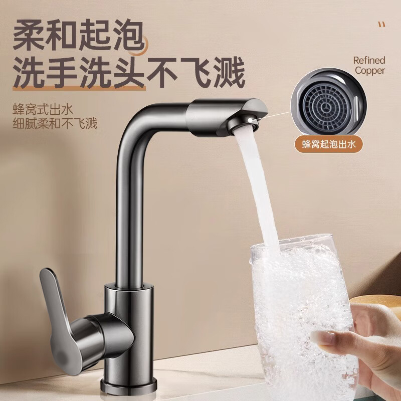 奥克斯(AUX)304不锈钢面盆水龙头洗手盆洗脸盆洗手池冷热卫生间龙头 七字面盆龙头【电镀银】