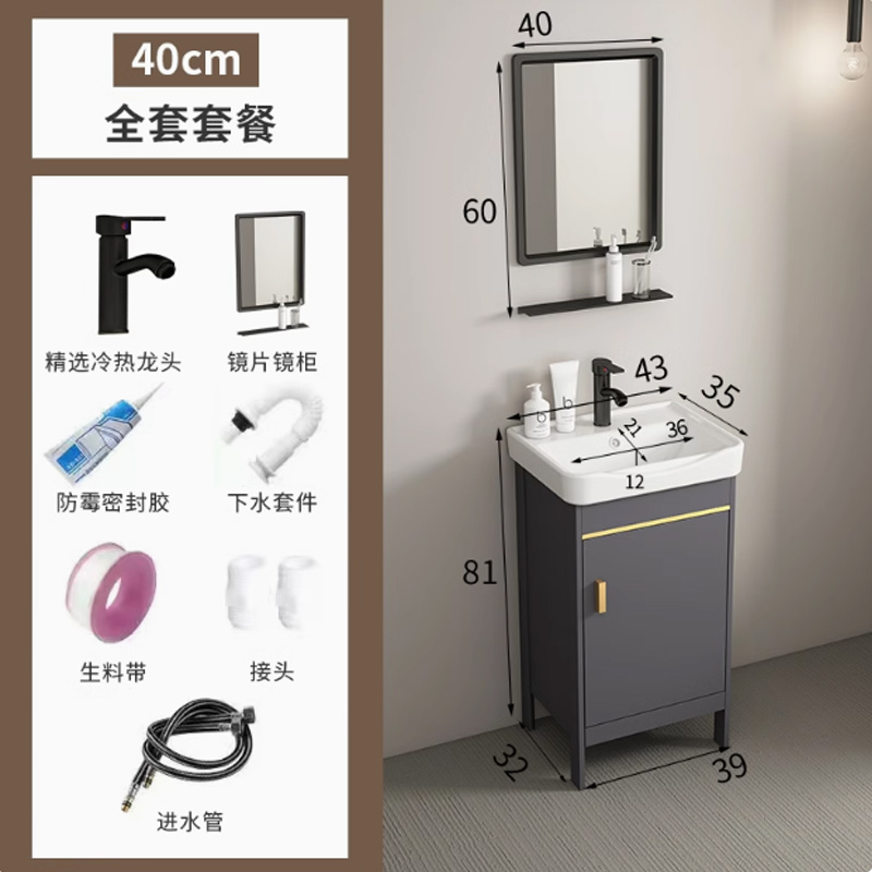 久牛星 落地式浴室柜洗脸盆卫生间洗漱台面盆高温陶瓷盆 43灰金全封落地+镜子