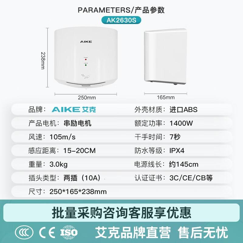 艾克AK2630TS壁挂式全自动感应高速干手器 烘手器