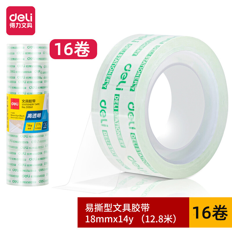 得力(deli)30061文具胶带18mm*14y*38um(8卷/筒) 24卷/3筒装