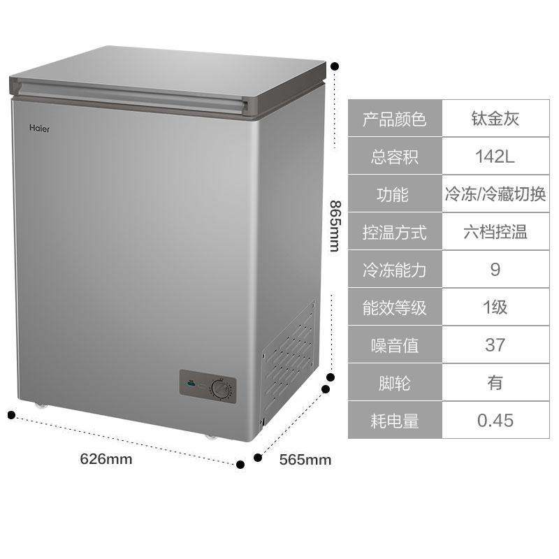 海尔(Haier)BC/BD-142GHPCZ 142升容量一级能效减霜80%冷藏冷冻切换 节能低霜冷柜