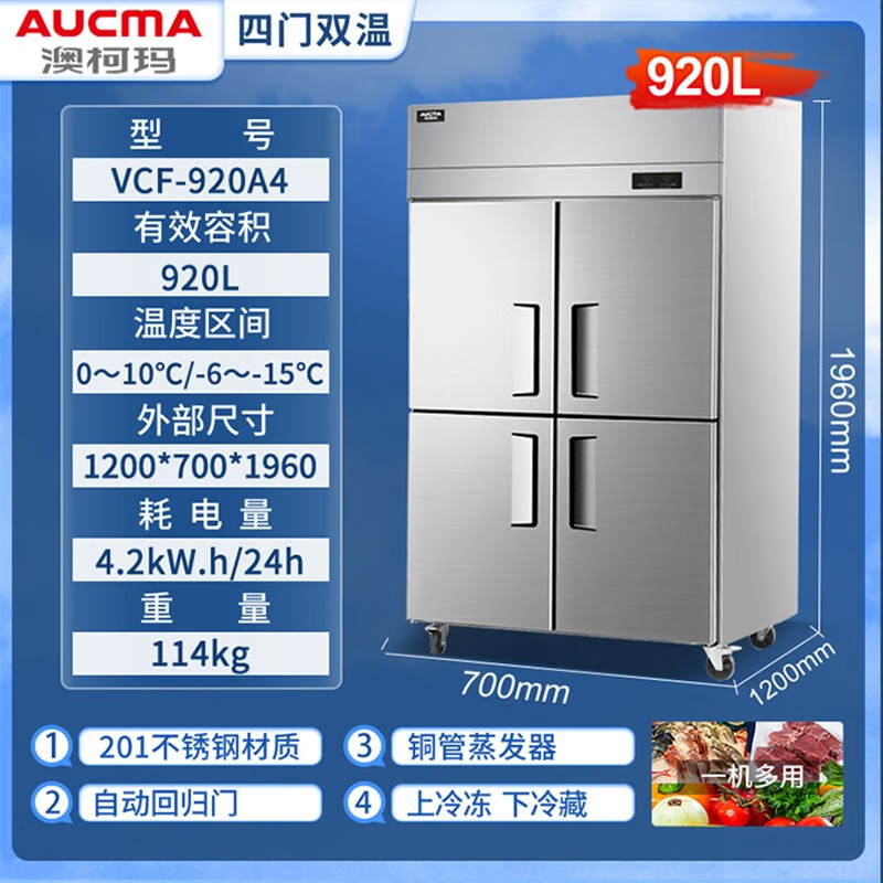 澳柯玛(AUCMA) VCF-920A4 四门双机双温 四门冰柜冰箱冷柜 冷藏冷冻双温保鲜 不锈钢商用厨房冰箱