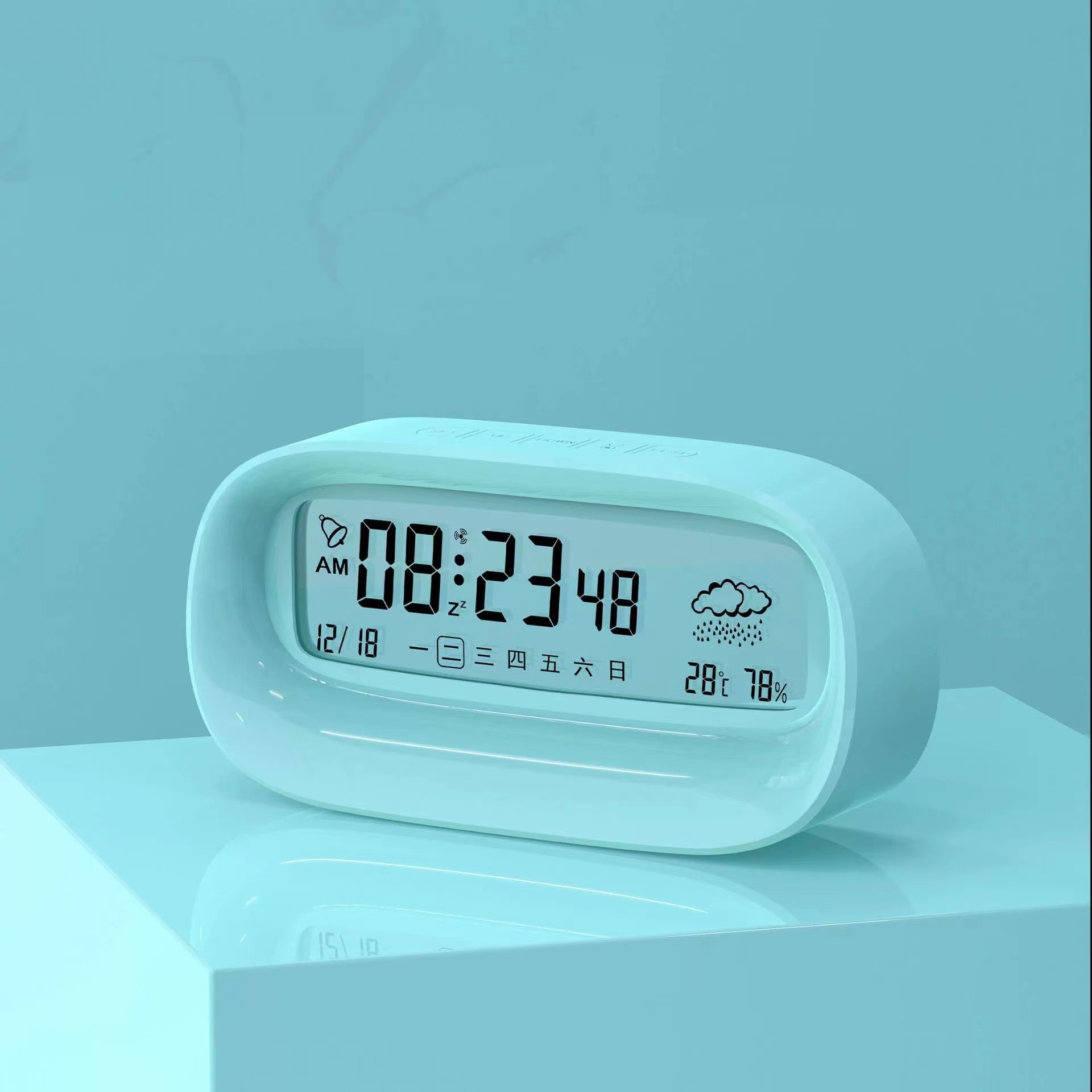 2023年新款透明闹钟学生用智能电子时钟起床神器带温度天气儿童 白色透明款