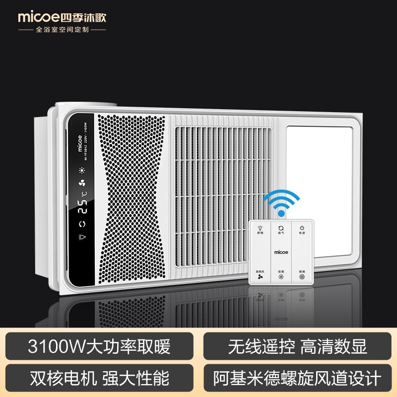 自营 四季沐歌(MICOE) M-YF5041 无线遥控多功能双电机风暖浴霸 大风口双核大功率速热 卫生间浴室灯暖风机取暖器
