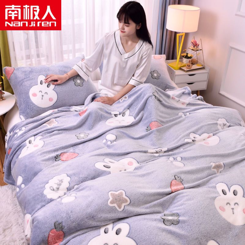 南极人雪花绒毛毯被子单人保暖法兰绒珊瑚绒毯子床单学生宿舍盖毯_1 120x200cm宿舍用-约1.1斤 兔果果-黄