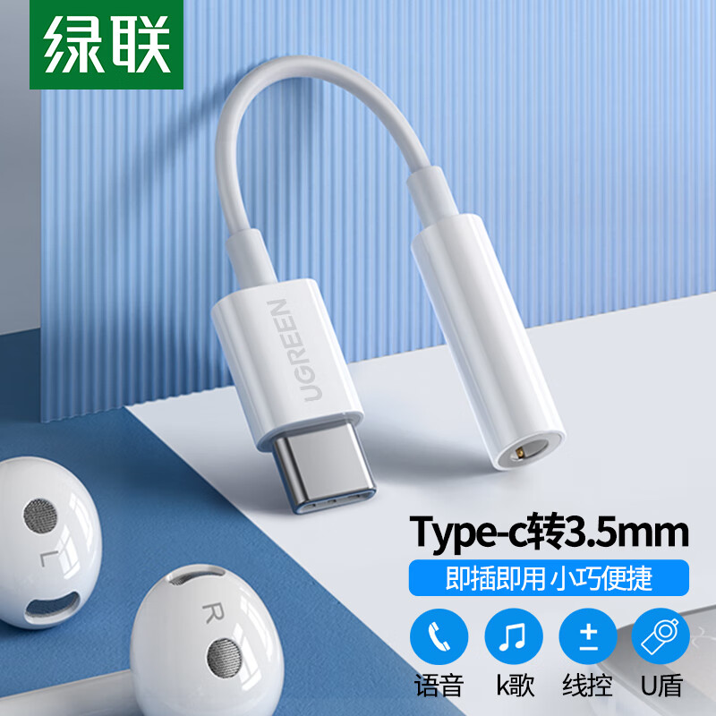 自营 绿联50393 耳机转接头Type-C转3.5mm音频数据线USB-C耳机转换器通用小米12/11华为Mate 40