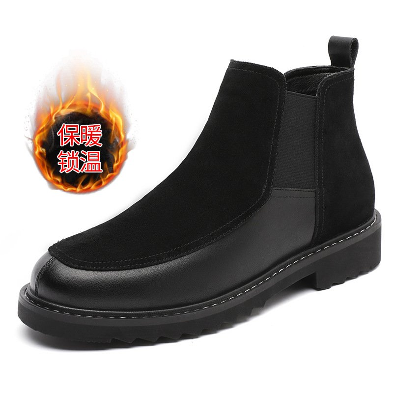 马丁靴男士冬季真皮英伦风切尔西男靴加绒高帮皮靴潮流百搭靴子男_2854 黑色加绒 43