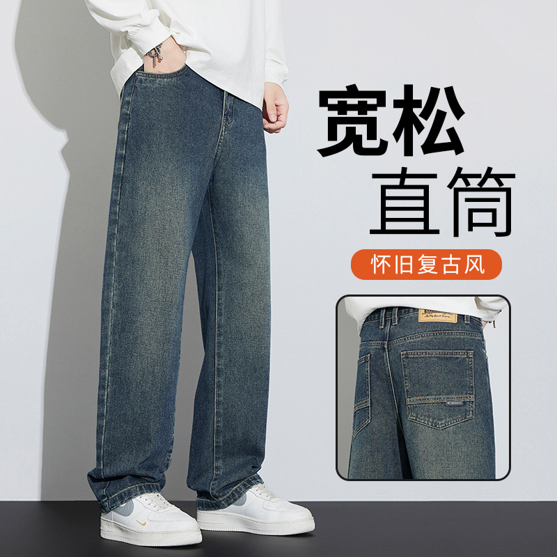 美式高街痞帅牛仔裤男秋冬季潮牌怀旧复古宽松休闲水洗阔腿裤 32(2尺5)140斤 K591怀旧蓝