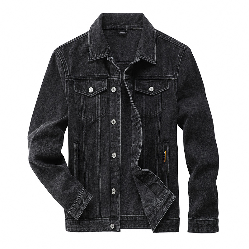 自营 新塘牛仔外套男士春秋新款纯色时尚简约宽松潮流刺绣蓝色夹克上衣 5XL(205斤) 6025黑色