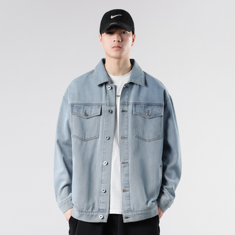 春秋季新款复古牛仔外套男机车翻领男士夹克水洗高档牛仔衣男 L(120斤) MS328浅蓝