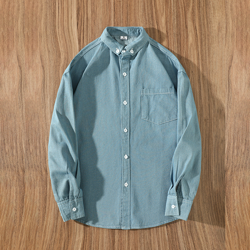 男装春秋季新款牛仔衬衫男长袖宽松日系复古工装休闲衬衣男士外套 2XL 189-CS-CY019浅蓝