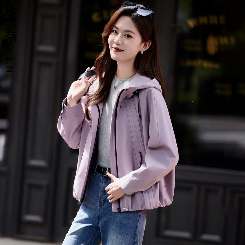 工装外套女年春秋韩版女士连帽休闲女款小个子短款风衣 M(推荐105-125斤) 浅紫色