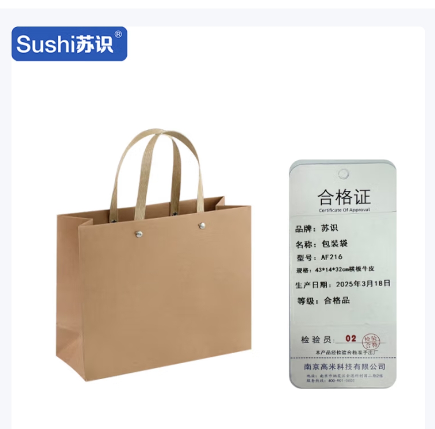 苏识 手提牛皮纸袋包装袋 43*14*32横版牛皮10个装 AF216 包