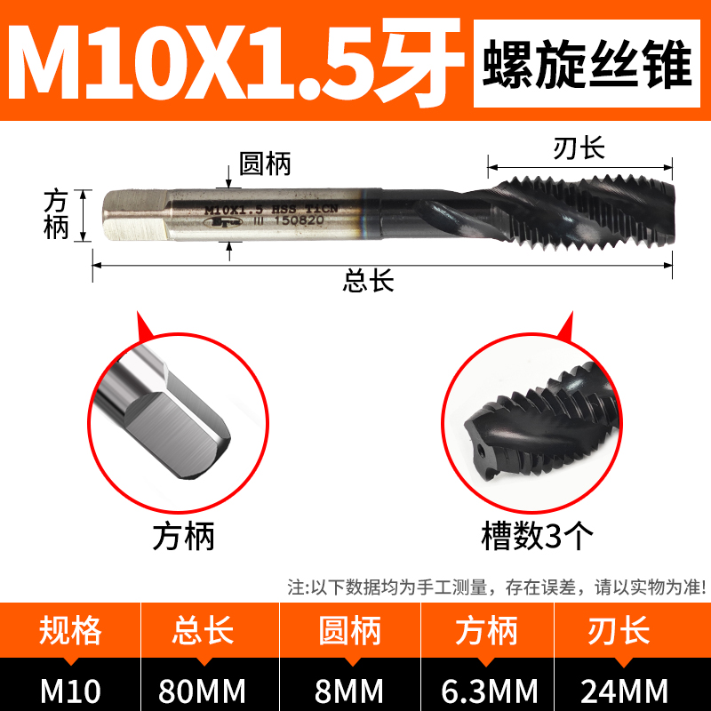 深东M35含钴氮化机用丝锥三连环先端螺旋丝攻不锈钢专用钻头M35含钴丝锥 螺旋M10*1.5【超硬含钴氮化】