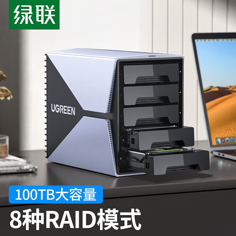 绿联 5盘胶壳阵列柜 8种raid 100T 70441