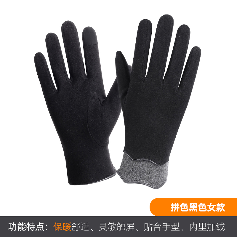南极人秋冬天新款保暖手套女士加绒舒适骑车触屏防寒户外开车男H 拼色黑色女款1583