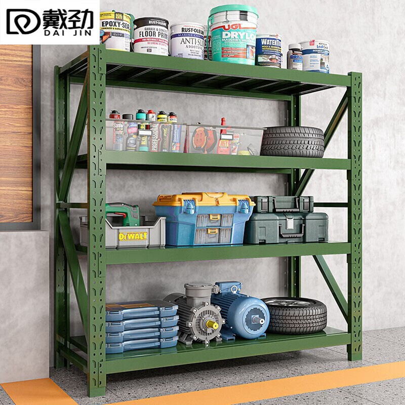 戴劲货架仓储仓库置物架超市快递铁架子储藏室军绿色货架主架(150*50*200cm-200KG/层)