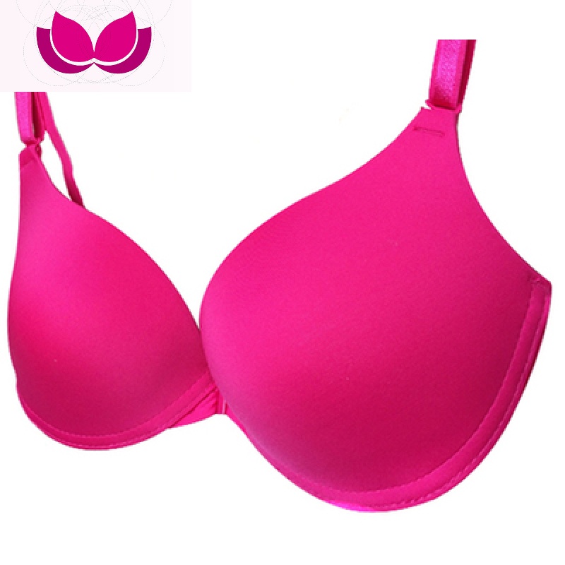 性感深V纯色光面细带漏背拉丁内衣一字美背前扣式聚拢文胸 38/85A 玫红