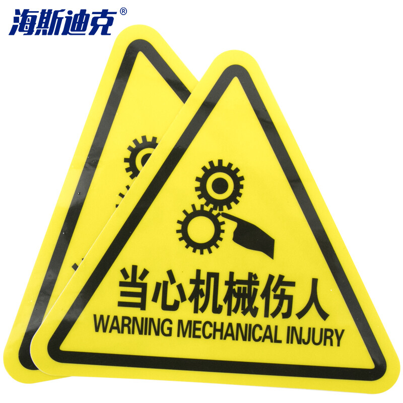 自营 海斯迪克 HK-44(10张)机械设备安全标示牌 贴纸电力牌子标识牌警告标志 当心机械伤人20*20cm