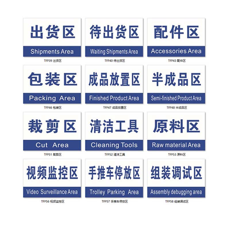 自营 丛林狐 企业标识车间分区牌区域牌中英文标贴放置区TFP 5mm雪弗板 30*20cm 如需裱板或其它分区牌请联系客服